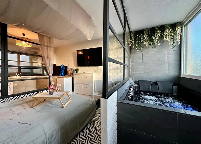 Situé à seulement 200 mètres du Mont Saint-Martin, Appartement Mini Loft Avec Jacuzzi & Piscine - Cap D'Agde propose à ses hôtes un accès facile à diverses attractions touristiques à proximité. Le Wi-Fi est fourni pour les activités d'affaires et de loisirs.